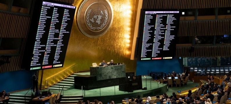 انطلقت في الجمعية العامة للأمم المتحدة، اليوم الجمعة، جلسة للتصويت على مشروع قرار جديد بشأن أحقية دولة فلسطين بالعضوية الكاملة وتعزيز مكانتها في المنظومة الأممية، أسوة ببقية دول العالم، ويوصي مجلس الأمن الدولي بإعادة النظر في الأمر بشكل إيجابي.