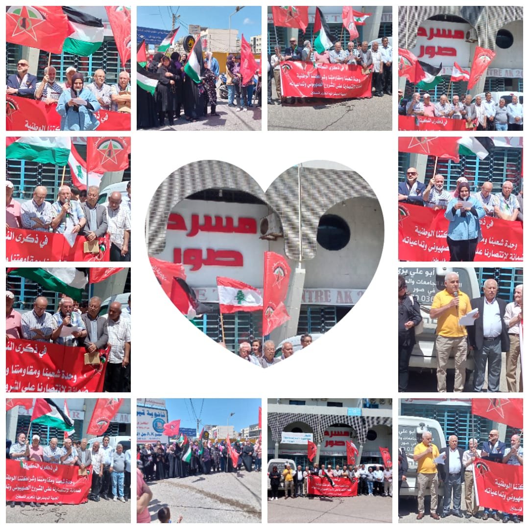 بمشاركة الفصائل الفلسطينية والاحزاب اللبنانية واللجان الشعبية والاهلية وفعاليات وطنية واجتماعية وحشد من الرفاق والرفيقات ، رفعت خلالها اعلام فلسطين ولبنان