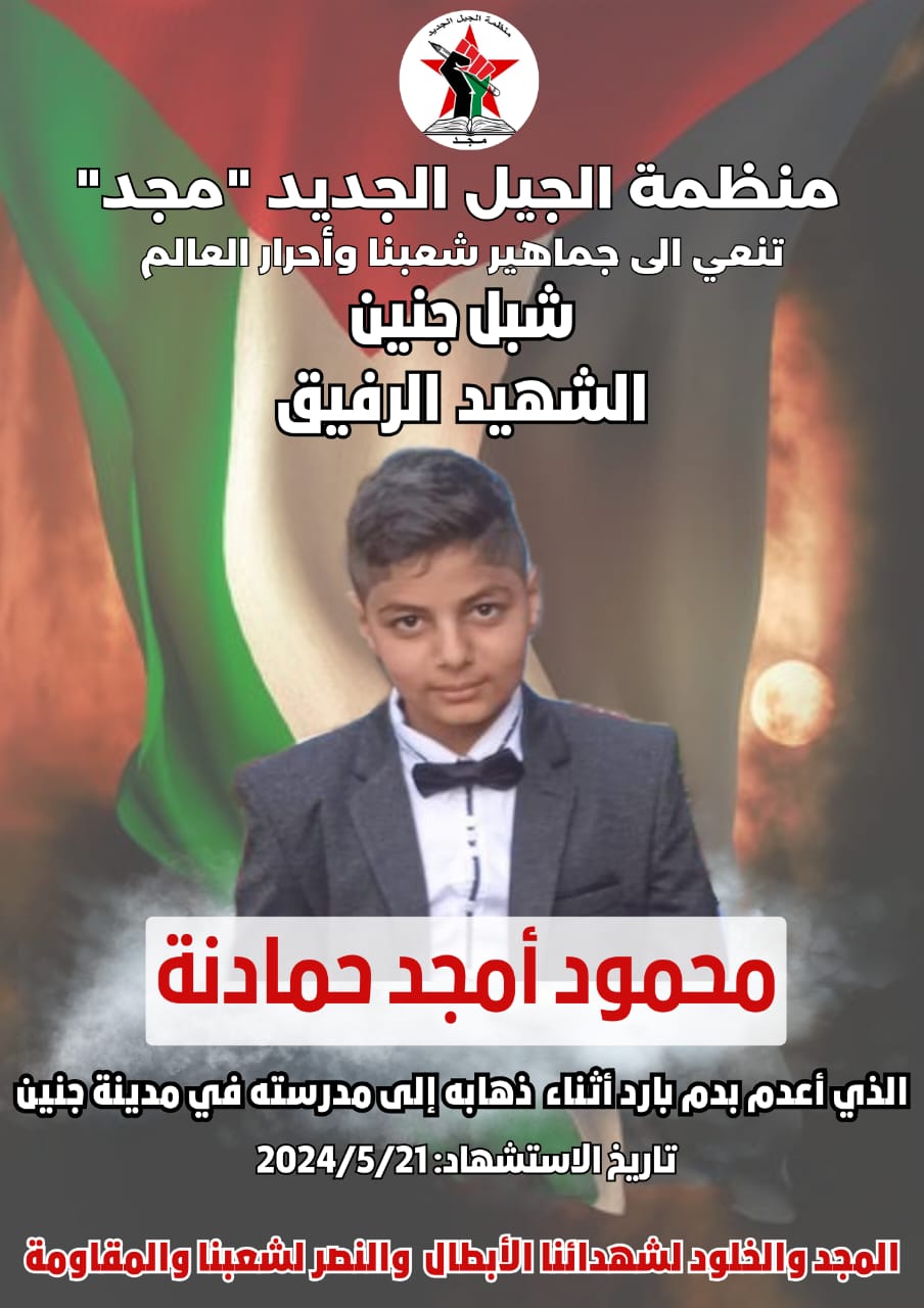 منظمة الجيل الجديد تنعي الرفيق الشهيد محمود أمجد حمادنة الذي ارتقى اليوم في جنين Last updated: 21 مايو، 2024 2:51 م أهم الاخبار انتهاكات الاحتلال فلسطيني Share SHARE Share This Article Facebook Whatsapp Whatsapp Telegram Copy Link Previous Article إندبندنت: قرار مدعي “الجنائية الدولية” يزيد الضغط على نتنياهو والحاجة لإنهاء حكمه الكارثي Next Article رباح يدعو إلى تنفيذ مذكرات الاعتقال بحق مجرمي الحرب “نتنياهو” و”غالنت” ويرفض مساوة المقاومة بالاحتلال والضحية بالجلاد