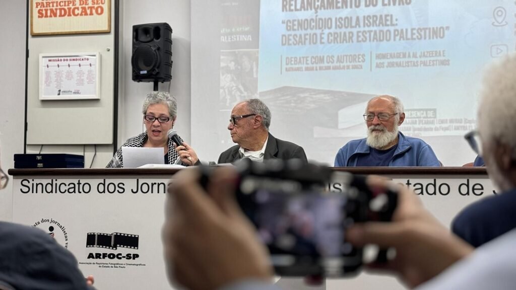 كرمت نقابتا الصحفيين والكتاب في ولاية ساو باولو بالبرازيل نقابة الصحفيين الفلسطينيين في فعالية أقامتها على وقع الترويج لكتاب «الابادة الجماعية تعزل إسرائيل: التحدي هو إنشاء دولة فلسطينية» للكاتبين ناثانيال برايا ونيلسون أراوجو دي سوزا.