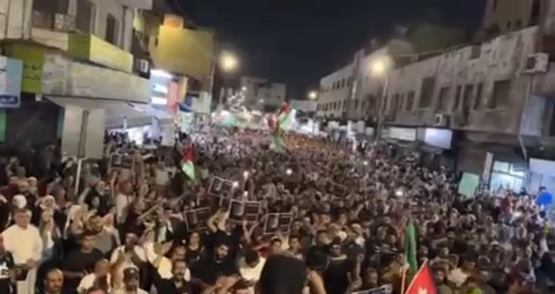 شهدت العاصمة الأردنية عمان مساء اليوم تظاهرة حاشدة نصرة لغزة والمقاومة الفلسطينية، حيث ردد المتظاهرون هتافات مناهضة لاتفاقية وادي عربة، معبرين عن دعمهم الكامل للشعب الفلسطيني في ظل العدوان الإسرائيلي المستمر.