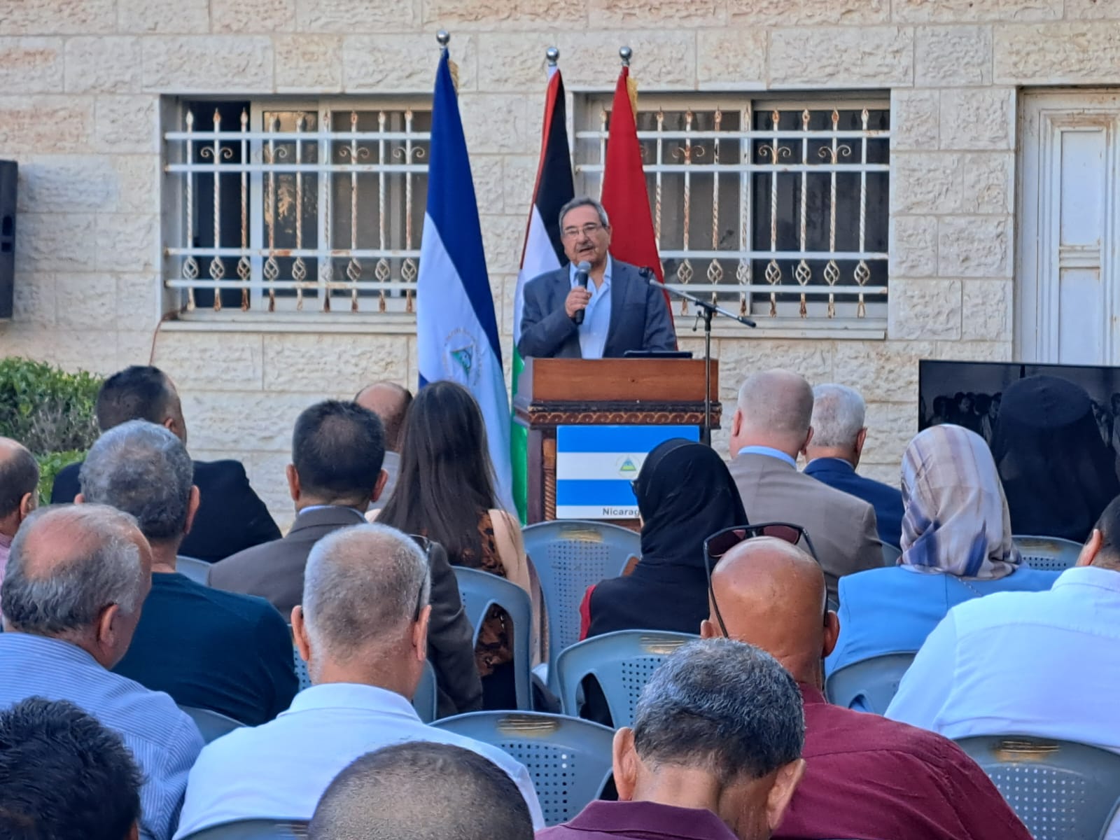 اليوم نحن في فلسطين ننظر بكل التقدير والعرفان لجمهورية نيكاراغوا وقيادتها ومواقف الرئيس اورتيغا، في دعم مواقف التضامن مع الشعب الفلسطيني وكفاحه التحرري وللتاريخ المجيد في العلاقات التي جمعت نيكاراغوا وفلسطين منذ بدايات سبعينات القرن الماضي، والكفاح المشترك والاحداث التحررية التي جمعتنا.