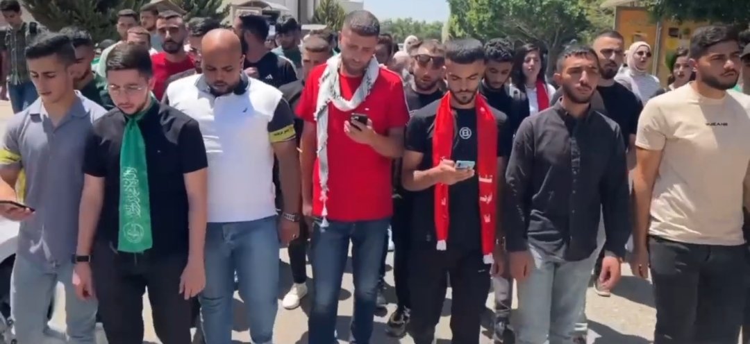 انطلقت المسيرة من داخل الحرم الجامعي، بمشاركة واسعة من الكتل الطلابية، وجابت أرجاء الجامعة، حيث ردد المشاركون هتافات منددة بجرائم الاحتلال ومجازره. وشددوا على أهمية المقاومة في مواجهة الاحتلال.