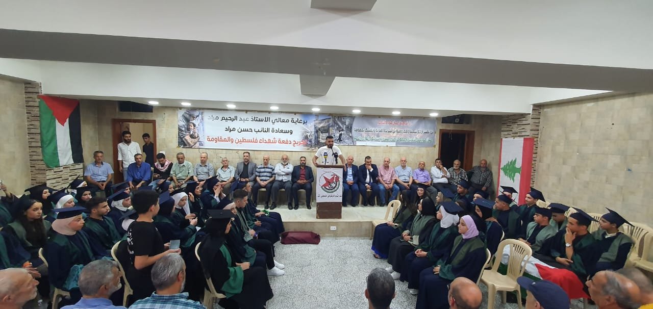تحت عنوان ” العلم والنجاح هو سلاحنا لرسم طريق عودتنا ” ودعما واسنادا لشعبنا الصامد في قطاع غزة نظم اتحاد الشباب الديمقراطي الفلسطيني “أشد” ومنظمة الجيل الجديد “مجد” مهرجانا تكريميا للطلبة الفلسطينيين الناجحين في الشهادات الرسمية في مخيم الجليل بمدينة بعلبك ،بحضور عضو اللجنة المركية للجبهة الديمقراطية الرفيق عبدالله كامل وقيادة الجبهة في المخيم بالاضافة الى قيادة واعضاء أشد ومجد في المخيم، وممثلين عن الاحزاب والقوى الوطنية اللبنانية والفلسطينية واللجان الشعبية والهيئات التعليمية والتربوية والأهالي والطلاب الناجحين .