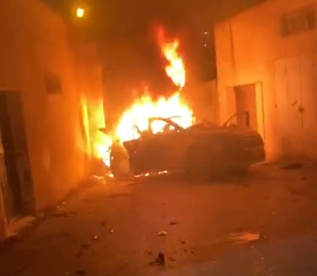 الهجوم العنيف أسفر عن تدمير السيارة بشكل كامل، وسط أنباء عن وقوع شهداء