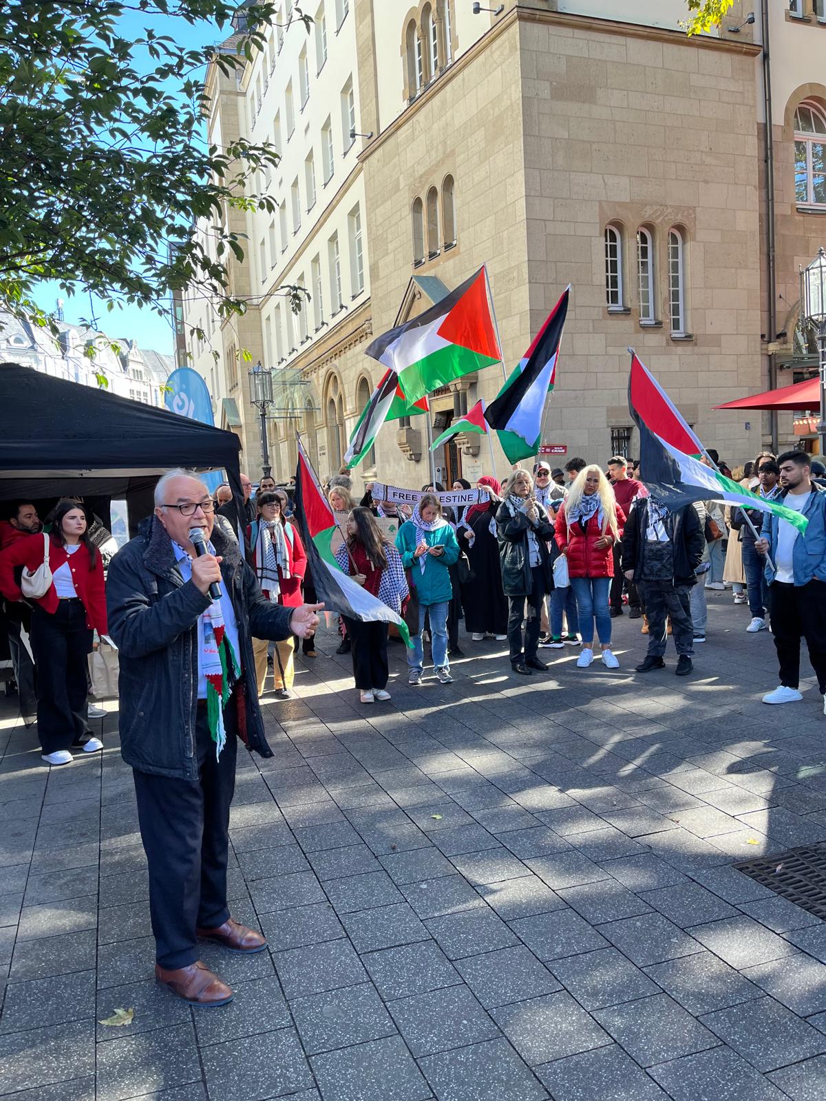 وبعدها تحدث العديد من المتضامنين من الحزب الشيوعي الالماني وطلاب من اجل فلسطين ونشطاء في ائتلاف ضد الابادة الجماعية .