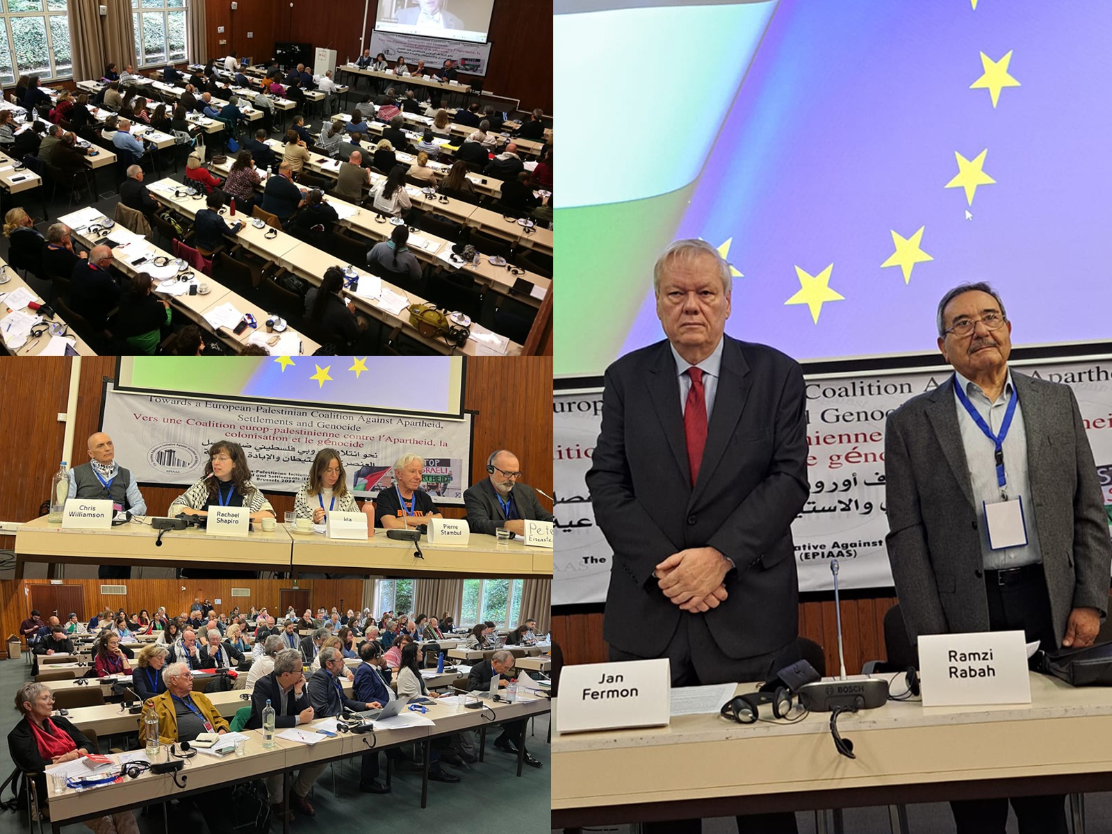 وفي الجلسة الافتتاحية، استعرض رئيس المبادرة الأوروبية الفلسطينية لمناهضة الابارتهايد المحامي “جان فيرمون” الجهود التي تبذلها المبادرة من اجل تشكيل ائتلاف أوروبي في مواجهة الفصل العنصري والاستعمار الاستيطاني الاسرائيلي والضغط من اجل وقف حرب الإبادة الجماعية على الشعب الفلسطيني.