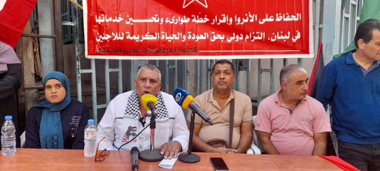 وتوجه بالشكر والتحية للمؤسسات التي تسعى لبلسمة جراح وآلام اللاجئين وتثبيت صمودهم في المخيم، ندعو لاجراءات سريعة من قبل وكالة الاونروا … هذه المؤسسة التي أنشأت بقرار دولي لاغاثة ومساعدة اللاجئين ،، وفي هذه الظروف تتعاظم مسؤولية الوكالة التي نؤكد نمسكنا بها ورفضنا لكل محاولات استهدافها، وندعو الى مواجهة القرار العدواني للكنيست الاسرائيلي بحظر عمل الوكالة في الاراضي الفلسطينية الذي يشكل استهدافاً واضحاً لقضية اللاجئين وحقهم بالعودة ومحاولة للنيل من الشاهد الدولي على نكبة فلسطين وجريمة الاحتلال بحق شعبنا الفلسطيني.