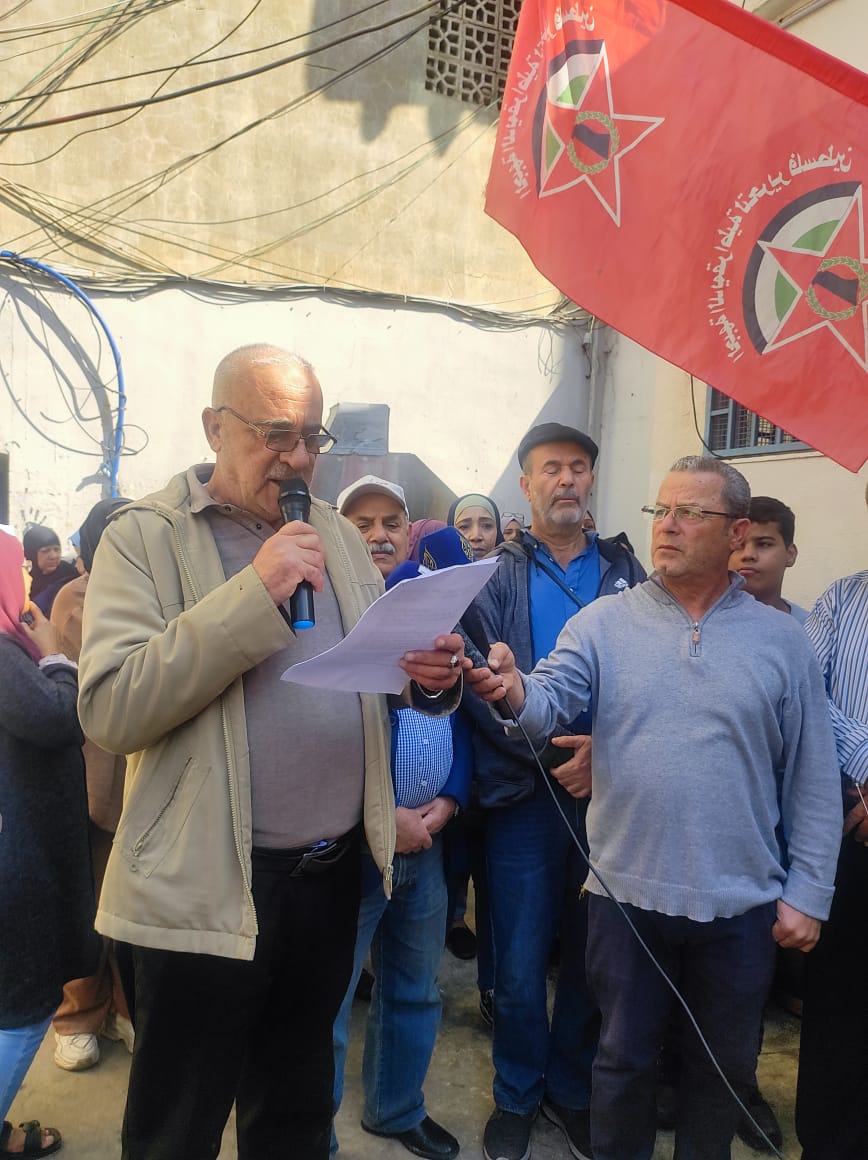 كلمة الجبهة الديمقراطية لتحرير فلسطين ألقاها امين الجبهة في المخيم وعضو قيادتها في لبنان الرفيق حسين شحرور. وجه التحية لشعبنا الصامد الصابر في غزة والضفة والقدس وفي كل لبنان. وحيا المقاومة بجميع أجنحتها العسكرية وخص بالذكر قوات الشهيد عمر القاسم الجناح العسكري للجبهة الديمقراطية لتحرير فلسطين. واثنى على دور المقاومة اللبنانية التي تدفع ثمنا باهضا بالوقوف إلى جانب قضيتنا والدفاع عنها. كما حيا شحرور جبهات الإسناد في اليمن والعراق وسوريا بالوقوف إلى جانب شعبنا ومقاومته في مواجهة حرب الإبادة. واشار