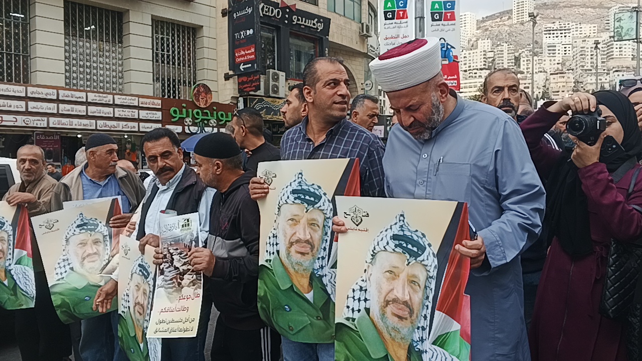 المسار الاخباري: نظمت اللجنة الوطنية لدعم الأسرى في محافظة نابلس، اليوم، وقفة تضامنية في ميدان الشهداء بالمدينة، إحياءً للذكرى العشرين لاستشهاد القائد الرمز ياسر عرفات، وتأكيداً على دعم وإسناد الأسرى الفلسطينيين في سجون الاحتلال، ورفضاً لحرب الإبادة التي تشنها قوات الاحتلال الصهيوني على قطاع غزة.