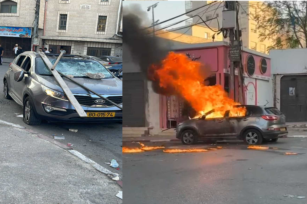 ووسط أجواء من الغضب والتحدي، أشعل المقاومون النيران في المركبة.