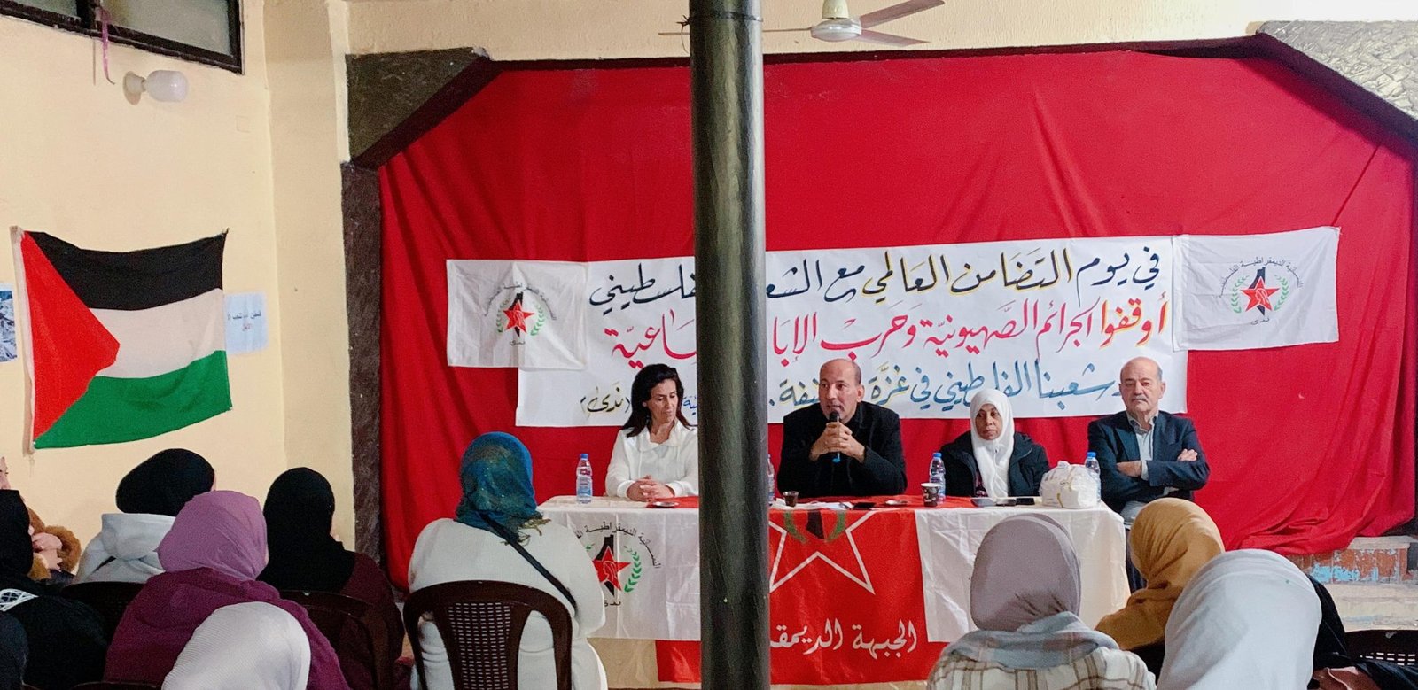 المسار الإخباري : نظّمت “المنظمة النسائية الديمقراطية الفلسطينية”(ندى)، اليوم الجمعة، ندوة سياسيّة في مخيم “عين الحلوة” للاجئين الفلسطينيين في مدينة صيدا جنوب لبنان، بمناسبة اليوم العالمي للتضامن مع الشعب الفلسطيني.