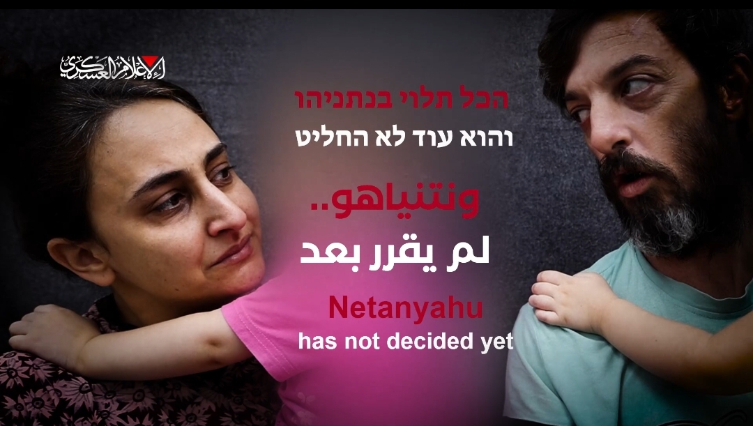 المسار الإخباري :نشرت كتائب القسام، الجناح العسكري لحركة حماس، مقطع فيديو موجهًا إلى شارون كونيو، زوجة الإسرائيلي المحتجز في قطاع غزة دافيد كونيو. في الفيديو، أكدت كتائب القسام أن رئيس وزراء الاحتلال الإسرائيلي، بنيامين نتنياهو، لم يتخذ بعد قرارًا بشأن مصير المحتجزين في غزة، ردًا على مطالبات زوجة كونيو باظهار مصير .