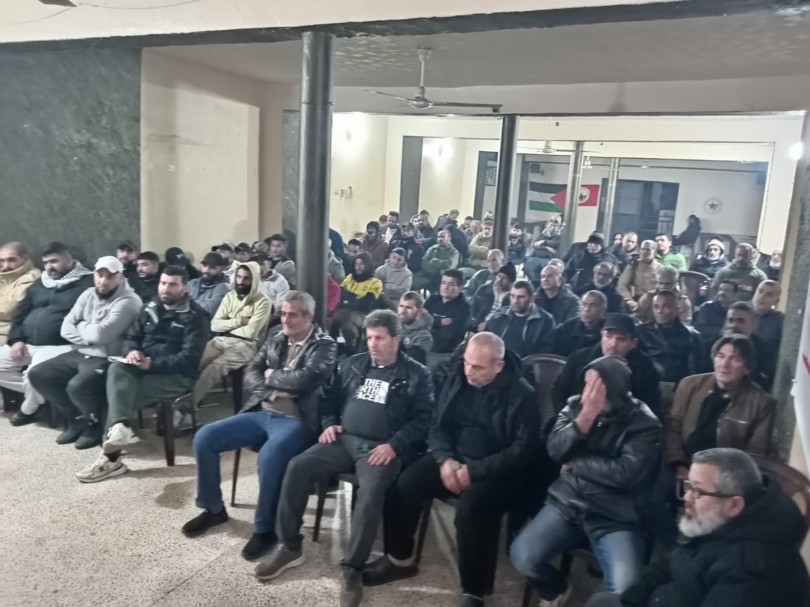 كما أشار الرفيق ابو سامح إلى المشاريع التي تستهدف قضية اللاجئين وحقهم في العودة من بوابة التصويب على وكالة الغوث ومحاولات الاحتلال الاسرائيلي وادارة تصفيتها من خلال حظر عملها في الضفة وغزة، وتدمير مراكزها في غزة واستشهاد ٢٢٠ من موظفيها، إضافة لتجفيف إدارة ترامب مواردها المالية، داعيا إلى تصعيد التحركات لحمايتها والضغط عليها للاستجابة لمطالب شعبنا وقطاعاته الاجتماعية المتضررة، وفي المقدمة منهم إلعمال الذين قدموا تضحيات جليلة في النضال الوطني، مؤكداً أن قطاع العمال في الجبهة لطالما دافع عن حقوقهم وسعى إلى تحسين ظروفهم المعيشية، مشددا على ضرورة إطلاق برامج اقتصادية واجتماعية لحماية اللاجئين الفلسطينيين في المخيمات، في ظل الظروف الاقتصادية الصعبة التي يعيشونها. ودعا الرئيس ابو مازن التراجع عن المرسوم الذي يستهدف رواتب عائلات الشهداء والأسرى والجرحى.