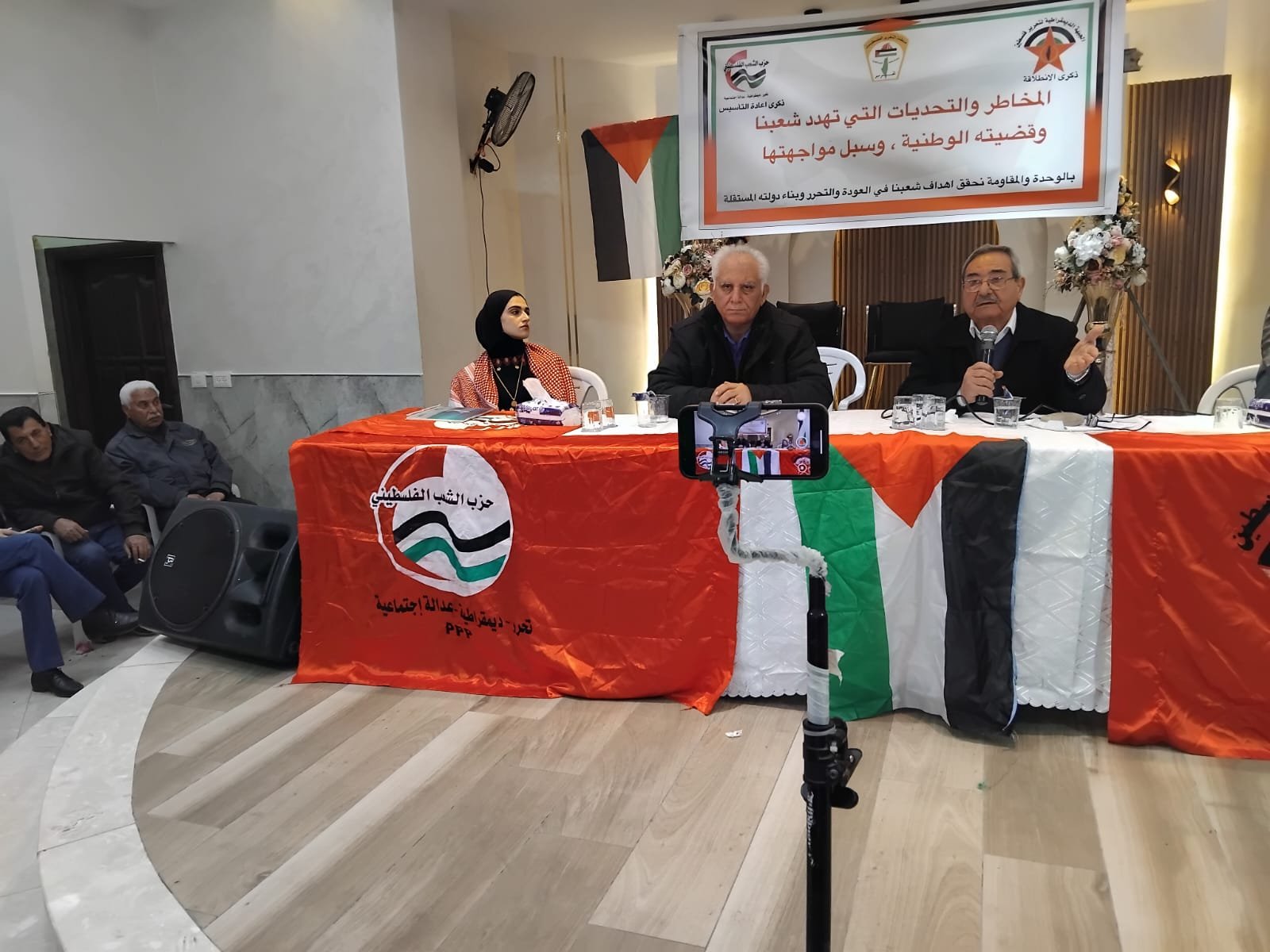 المسار : على شرف الذكرى السادسة والخمسين لانطلاقة الجبهة الديمقراطية ، والذكرى الثالثة والأربعين لإعادة تأسيس حزب الشعب ، نظم الفصيلان ندوة حوارية في بلدة بيت كاحل- محافظة الخليل ، أمس الجمعة الموافق ٢٨ شباط ، وذلك بمشاركة قيادات وطنية ومؤسسية، وجمهور حاشد من البلدة والمحافظة ، تحت عنوان ( المخاطر والتهديدات التي تواجه شعبنا وقضيته ، وسبل مواجهتها ).