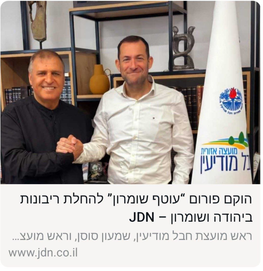 المسار الإخباري :في خطوة جديدة لتعزيز تطبيق السيادة في مناطق يهودا والسامرة، أطلق رئيس مجلس موديعين الإقليمي شمعون سوسان ورئيس مجلس السامرة يوسي دغان منتدى جديد تحت اسم “غلاف السامرة” [نابلس]. يهدف المنتدى إلى تعزيز السيادة الإسرائيلية في هذه المناطق من منظور أمني.