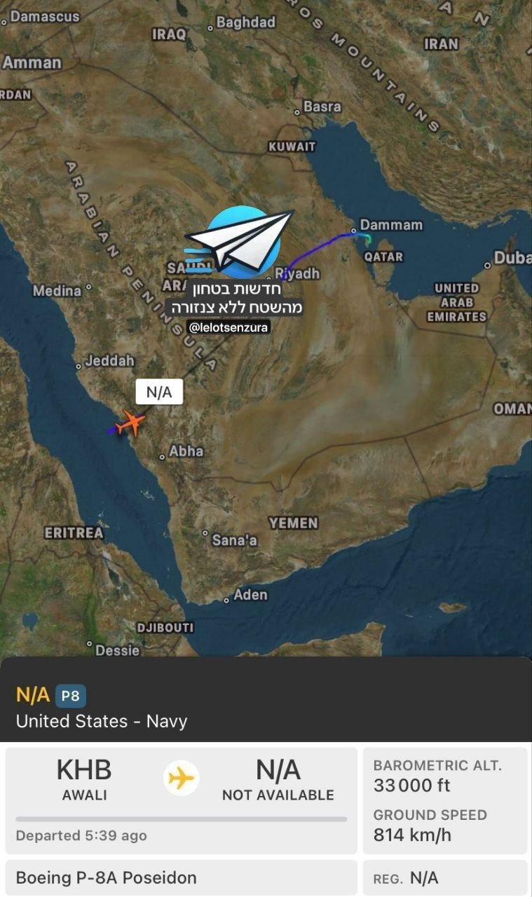 المسار الإخباري :عادت طائرة جمع المعلومات الاستخباراتية الأميركية من طراز P8 بوسيدون إلى قاعدتها في البحرين، بعد إتمام مهمة جمع معلومات استخباراتية في اليمن.