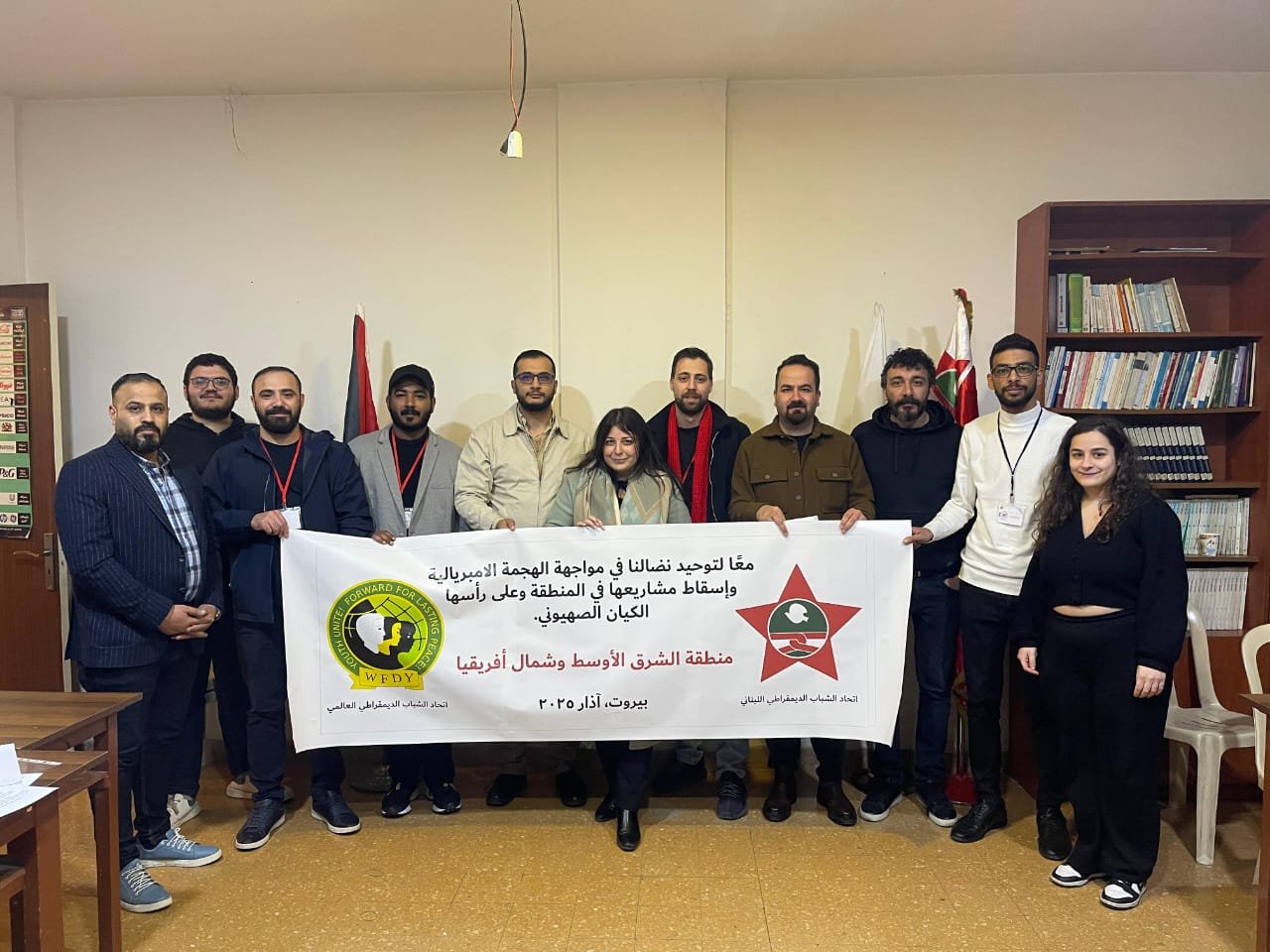 شارك وفد قيادي من اتحاد الشباب الديمقراطي الفلسطيني “أشد” في اجتماع المنطقة العربية لاتحاد الشباب الديمقراطي العالمي “الوفدي” الذي عقد باستضافة اتحاد الشباب الديمقراطي اللبناني بمقره في العاصمة اللبنانية بيروت، بمشاركة المنظمات اليسارية والتقدمية الاعضاء من عدد من الدول العربية واستمر لمدة يومين. وضم وفد أشد الرفاق محمد حسين عضو سكرتاريا أشد ومسؤول العلاقات الدولية للاتحاد والرفيق محمود الشوني عضو سكرتاريا أشد .