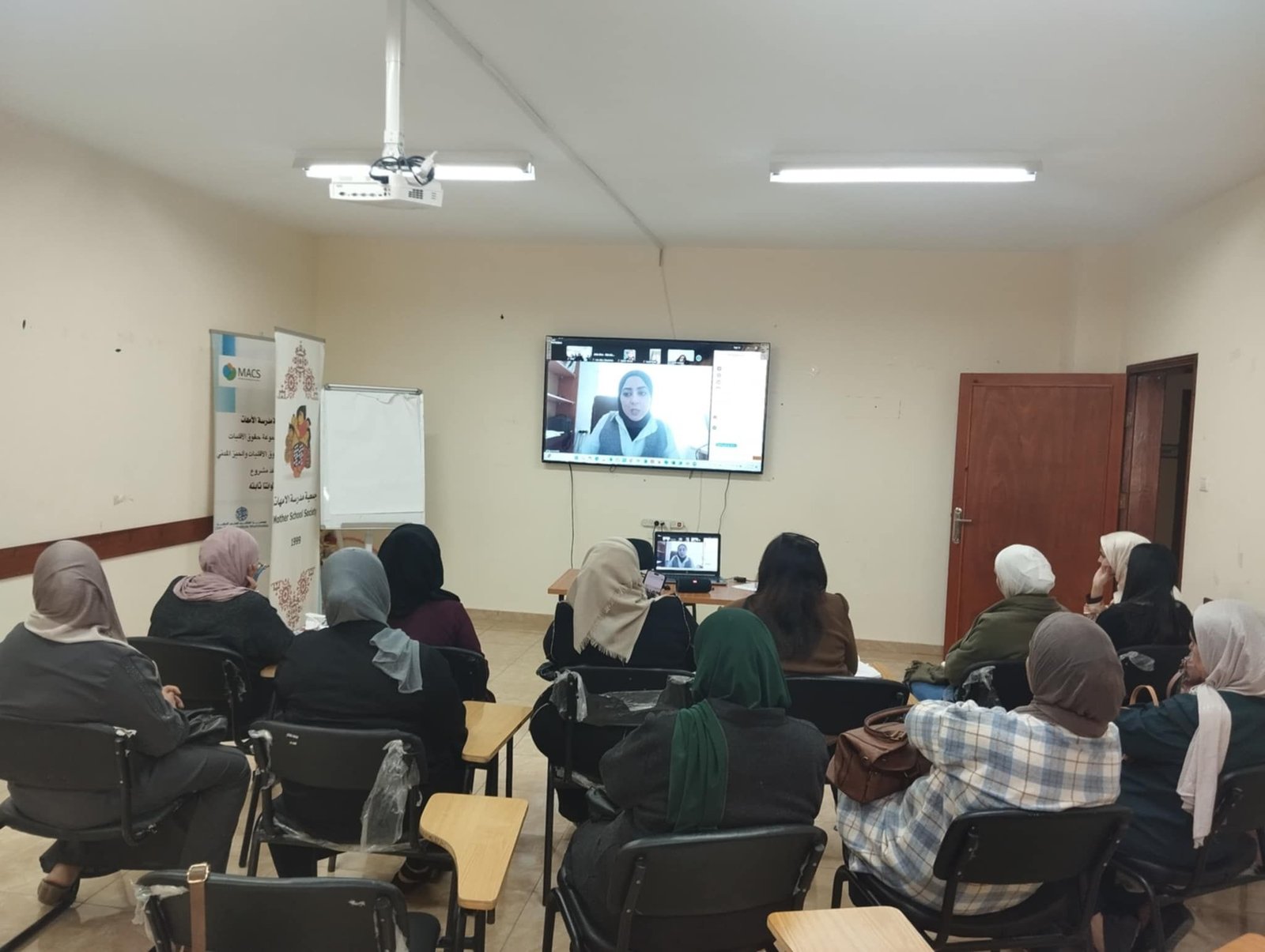 افتتحت اللقاء الأستاذة سناء شبيطة، مديرة جمعية مدرسة الأمهات، حيث تحدثت عن دور الجمعية حول توثيق الانتهاكات التي تتعرض لها النساء في فلسطين، وأهمية تقديم الدعم لهن. وطالبت المجتمع الدولي بالنظر لمعاناه المراه الفلسطينيه التي ينتهجها الاحتلال الإسرائيلي  من خلال الحواجز والاعتقالات والمداهمات البيتيه .