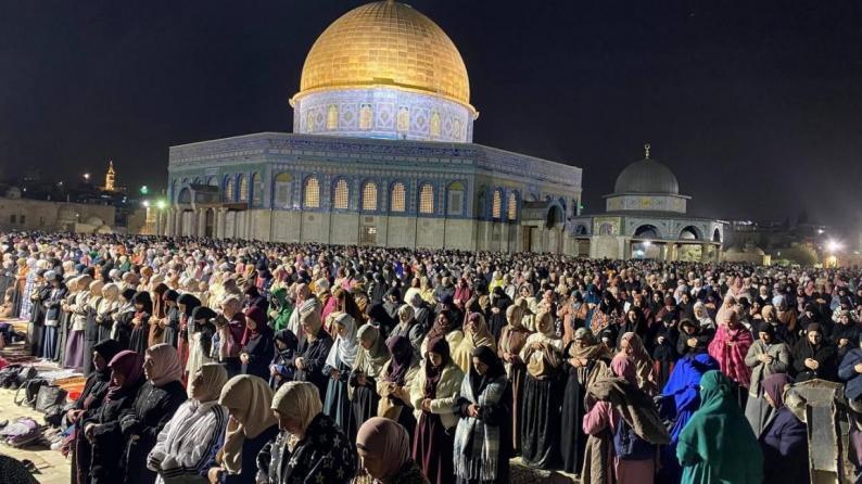 المسار الاخباري : أدى 70 ألف مصل ومصلية، مساء اليوم الخميس، صلاتي العشاء والتراويح في المسجد الأقصى المبارك بمدينة القدس المحتلة.