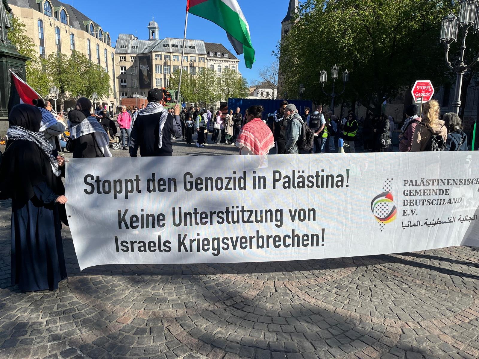 وتم اصدار بيان عن الجالية الفلسطينية باللغة الالمانية والذي وزع بكثافة على الالمان في الساحة الرئيسية في مدينة بون . وقام عضوٍ الهيئة الإدارية الزميل وائل بالمطالبة بوقف إطلاق النار فورا وادخال المساعدات الانسانية إلى غزة .