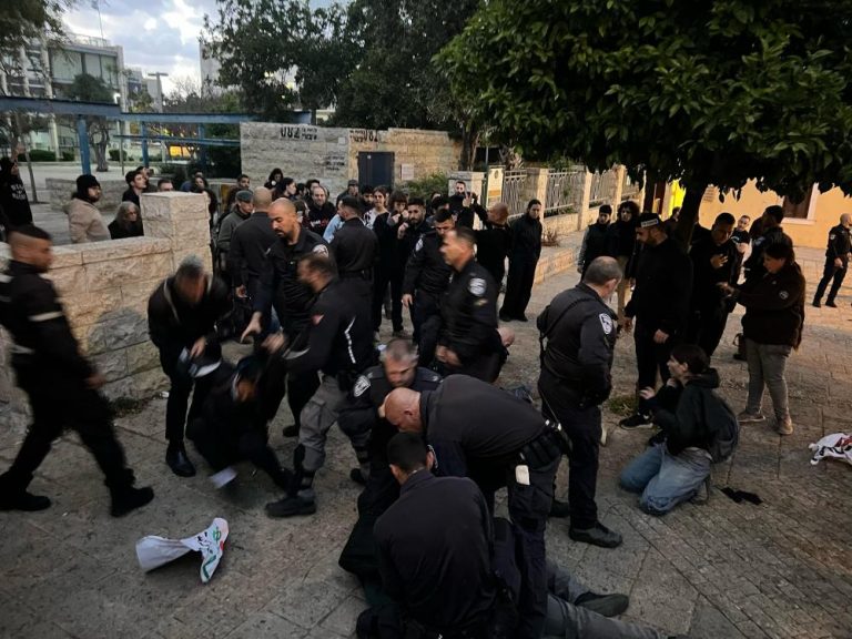 المسار الاخباري : اعتقلت شرطة الاحتلال الإسرائيلي مساء اليوم الخميس، عددا من المحتجين إثر قمع وقفة منددة بالحرب على غزة في ساحة الأسير بمدينة حيفا بالداخل الفلسطيني المحتل.