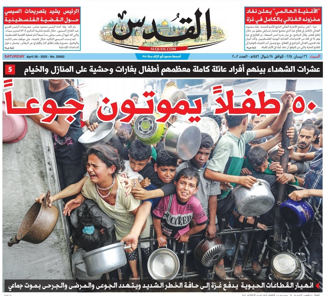 تصعيد دموي في غزة: استمرار المجازر بحق المدنيين، وارتفاع حصيلة الشهداء إلى أكثر من 36 شهيدًا منذ فجر الاثنين. الصحف أبرزت مأساة عائلة الخور التي أبيدت بالكامل تحت القصف، وحالة الجوع والانهيار الإنساني مع نفاد الإمدادات الطبية والغذائية.
