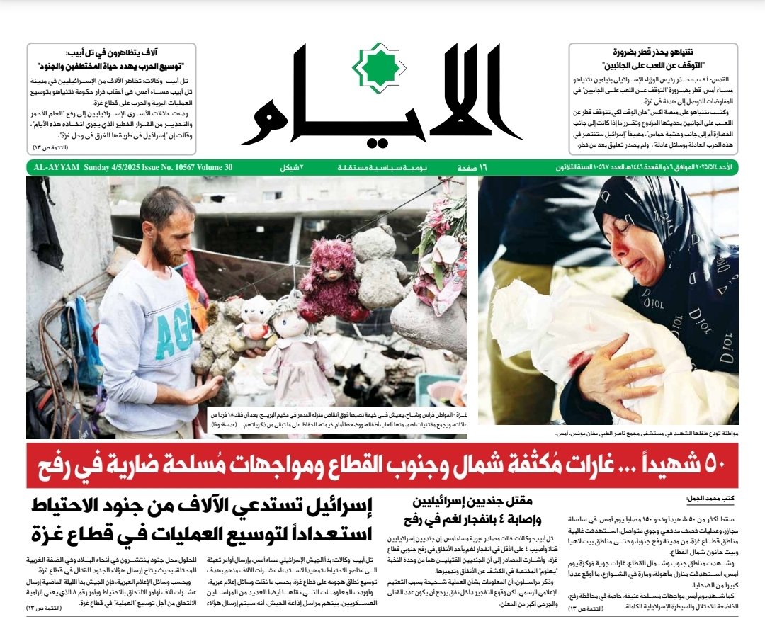 يُشار إلى أن تغطيات الصحف الثلاث عكست عمق الكارثة الإنسانية في غزة، والتصعيد الإسرائيلي المتواصل في الضفة الغربية، وسط صمت دولي متواصل وتجاهل للتحذيرات الأممية.