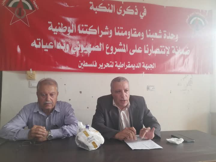المسار الاخباري: أحيت الجبهة الديمقراطية لتحرير فلسطين في لبنان الذكرى 77 للنكبة بندوة سياسية اقامتها في تجمع القاسمية شمالي مدينة صور في جنوب لبنان، حضرها ممثلو الفصائل ولجان شعبية وهيئات واطر مجتمعية، اضافة الى عضو اللجنة المركزية للجبهة تيسير عمار.. وادار الندوة مسؤول الجبهة في تجمعات الشريط الساحلي غازي حسين وتحدث فيها عضو المكتب السياسي فتحي كليب.