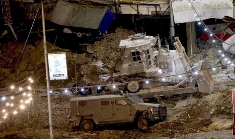 واصلت جرافات جيش الاحتلال الإسرائيلي، مساء اليوم الثلاثاء، عمليات الهدم في مخيم جنين، مدمِّرةً عدداً من المنازل في منطقة “طلوع الغبز”.