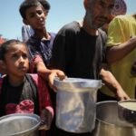 ورفع المشاركون، ومن بينهم أطفال، لافتات تندد بالمجاعة في غزة، فيما حمل آخرون أوانٍ فارغة، في مشهد مؤثر يجسد عمق الأزمة الإنسانية التي تعصف بمليوني إنسان في القطاع المحاصر منذ قرابة 5 أشهر.