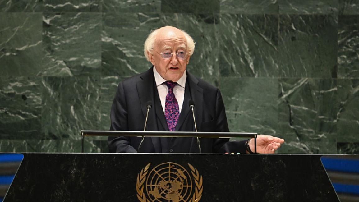وأضاف هيغينز: “وأعني بذلك فعلياً سواء وافق مجلس الأمن أم لا، وحتى لو كان هناك تعطيل (فيتو) فإن الحق قائم للأمين العام في السعي لتشكيل دفاع دولي”. وأشار الرئيس الأيرلندي لوجود ستة آلاف شاحنة مساعدات تكفي لثلاثة أشهر مُنعَتْ من دخول غزة، قائلاً “هذا أمر فظيع”. وتابع “لا أستطيع هنا الوقوف وإلقاء خطاب عندما أرى هذا الدمار الهائل لشعب يحدث الآن، هل سنبقى نشاهد الأطفال يتضورون جوعاً، ونساء يعانين الجفاف يحاولن إطعام أطفالهن؟ يجب أن يحدث شيء، يجب أن يحدث شيء”.