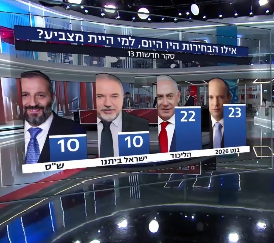 تحالف آيزنكوت مع لابيد يعطيهما معًا 11 مقعدًا فقط، بينما يقفز بينيت منفردًا إلى 30.