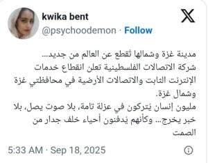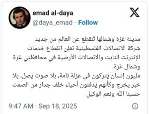 وقد أثار هذا الانقطاع غضباً واسعاً على مواقع التواصل الاجتماعي، حيث وصف ناشطون ما يجري بأنه محاولة لـ”ذبح غزة بصمت”، مؤكدين أن الاحتلال يسعى لإخفاء صرخات الأطفال والثكالى خلف جدار من الصمت الرقمي.