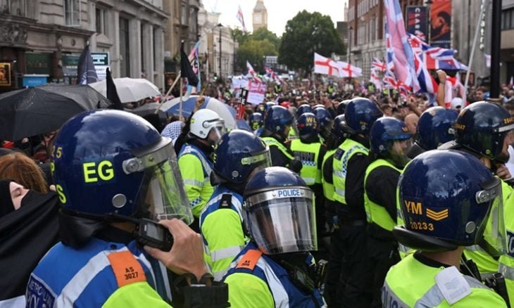 يأتي هذا التدخل بعد أن شارك أكثر من 110 آلاف متظاهر– يحمل العديد منهم أعلامًا- في احتجاجات “توحيد المملكة”، التي نظمها الناشط تومي روبنسون الأسبوع الماضي.