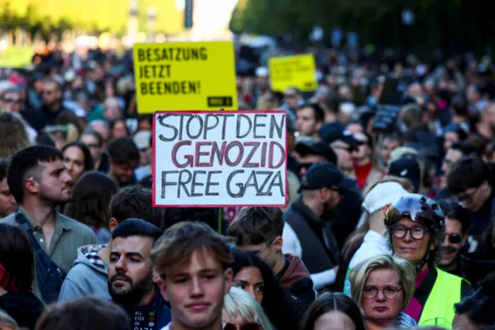 وفي العاصمة الألمانية برلين، انطلقت مسيرة “كل العيون على غزة” من أمام مبنى البلدية باتجاه عمود النصر في حديقة تيرغارتن بمشاركة عشرات الآلاف. وردد المتظاهرون هتافات مثل “تحرير فلسطين” و”الحرية لفلسطين”، حاملين لافتات كتب عليها “أوقفوا المذبحة”.