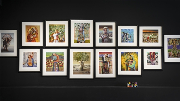 المعرض يتضمن لوحات من الطبيعة الفلسطينية مثل أشجار الزيتون والليمون، بالإضافة إلى رسمة البطيخ التي أصبحت رمزا مهما للعلم الفلسطيني.