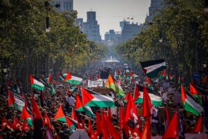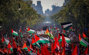 المسار :شهدت مدينة برشلونة تظاهرات مؤيدة للفلسطينيين لليوم الثالث على التوالي، بمشاركة مئات الآلاف من المتظاهرين، في مسيرة ضخمة انطلقت صباح السبت بدعم أكثر من 500 منظمة وجمعية مدنية.