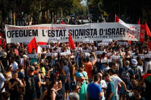 وشارك في تنظيم الفعالية الجالية الفلسطينية في كتالونيا وائتلاف “أوقفوا التواطؤ مع إسرائيل”، والأسطول العالمي صمود، إلى جانب النقابات العمالية ومنظمات الأحياء والجماعات النسوية ومنظمات العدالة العالمية.