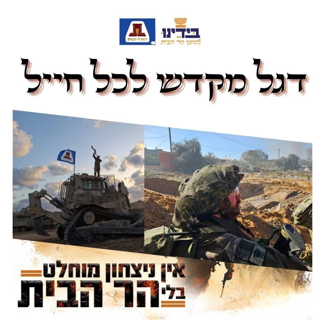 المسار :أطلقت منظمات مرتبطة بـجبل الهيكل حملة لتوزيع رايات تحمل صورة الهيكل على مختلف وحدات جيش الاحتلال الإسرائيلي، في خطوة تهدف إلى تعزيز البعد الديني لدى الجنود، ووفق المنظمات، لتأكيد أن المعركة دينية وعقائدية قبل أن تكون سياسية.