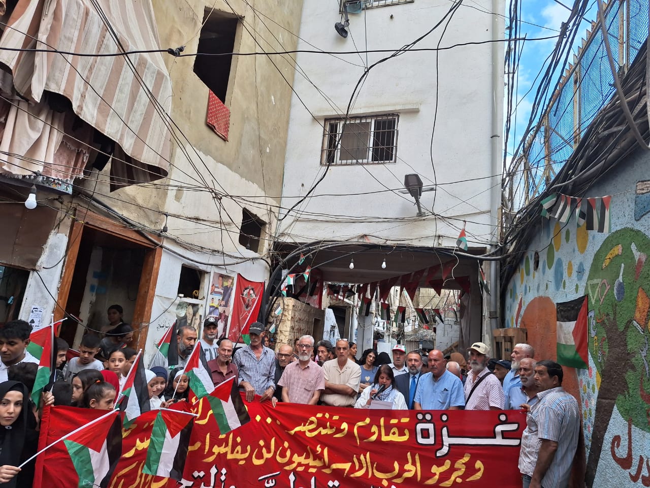 كلمة فلسطين ألقتها الرفيقة لينا الصوري، عضو قيادة الجبهة في المخيم، فأكدت أن معركة طوفان الأقصى أعادت الاعتبار للقضية الفلسطينية، وفتحت صفحة جديدة من النضال في مواجهة الاحتلال. وشدّدت على أن الشعب الفلسطيني ومقاومته قد أثبتا صموداً أسطورياً في وجه حرب الإبادة التي شنها العدو على قطاع غزة، وفشلت محاولاته في كسر إرادته أو إسكات صوته المقاوم. ودعت إلى إنهاء الانقسام فوراً، وإطلاق حوار شامل تحت راية منظمة التحرير الفلسطينية الممثل الشرعي والوحيد لشعبنا، ووقف العدوان وتأمين الاحتياجات الإنسانية العاجلة وإعادة إعمار القطاع، ورفض أي وصاية عليه، والتمسك بدور وكالة الأونروا في رعاية اللاجئين وصون هويتهم الوطنية.