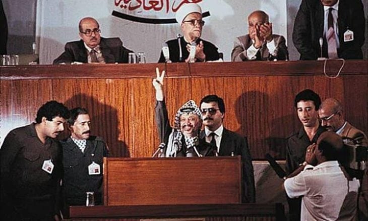 وفي 15 نوفمبر/تشرين الثاني 1988، احتضنت الجزائر، بقصر الأمم بالعاصمة، الدورة التاسعة للمجلس الوطني الفلسطيني، والتي أعلن خلالها الرئيس الراحل ياسر عرفات قيام الدولة الفلسطينية.
