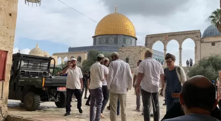مستوطنون يؤدون طقوسًا تلمودية علنية قرب قبة الصخرة وسط حراسة مشددة