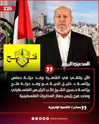 المسار : ذكرت مصادر مطلعة، أن اللقاء بين رئيس حركة حماس في غزة ووفدها المفاوض، خليل الحية، ونائب الرئيس الفلسطيني ورئيس اللجنة التنفيذية لمنظمة التحرير الفلسطينية، حسين الشيخ، في العاصمة المصرية القاهرة كان بروتوكوليا؛ بحسب ما أورد موقع “الترا فلسطين” نقلا عنها السبت.