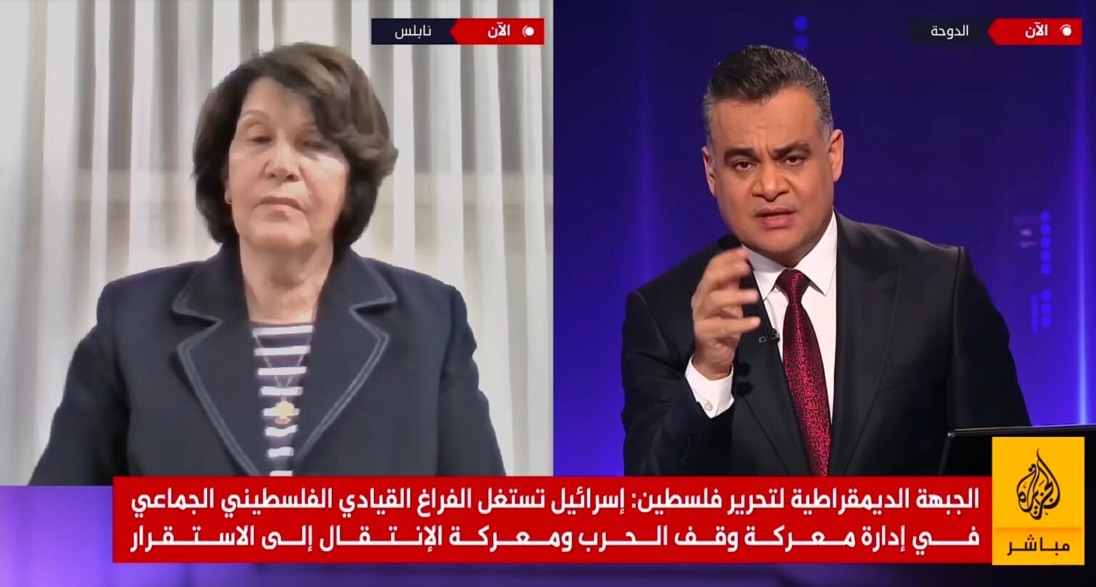 المسار :نائب أمين عام الجبهة الديمقراطية لتحرير فلسطين، ماجدة المصري، قالت في حديثها للجزيرة مباشر: