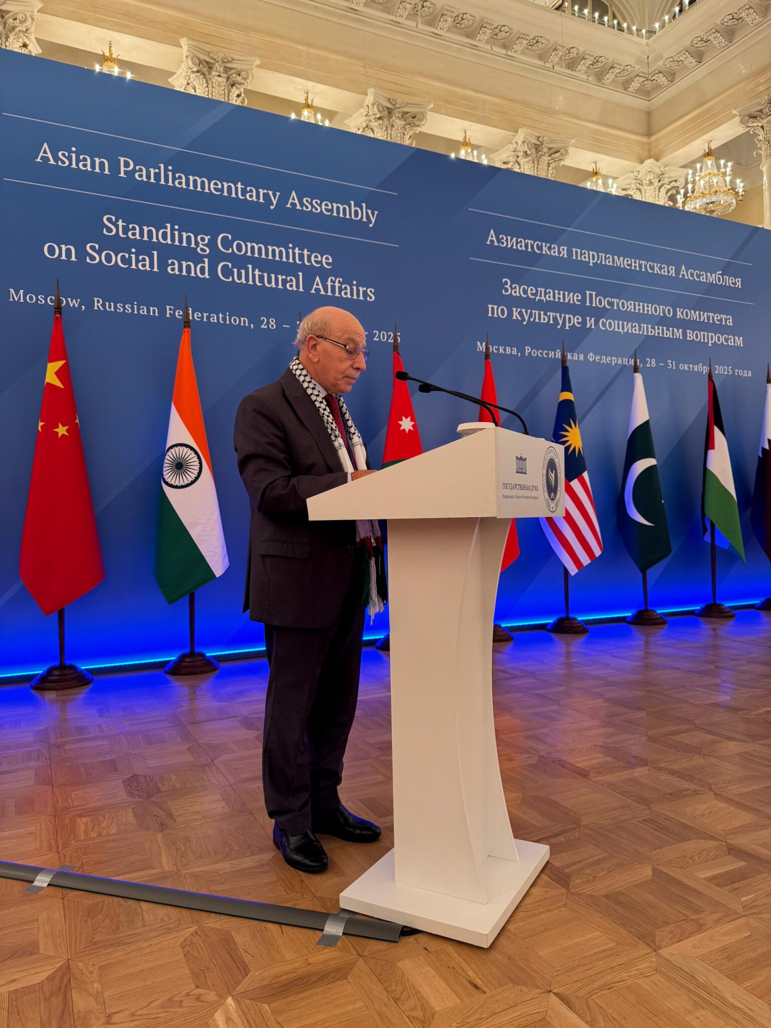 شارك وفد المجلس الوطني الفلسطيني في اجتماعات اللجنة الاجتماعية والثقافية التابعة للبرلمان الآسيوي، المنعقدة في العاصمة الروسية موسكو، وقد ترأّس الوفد نائب رئيس المجلس الوطني الفلسطيني علي فيصل، وضمّ في عضويته كلًّا من الدكتور فريد شعلان والدكتور نمر بكر.