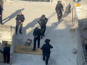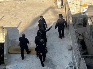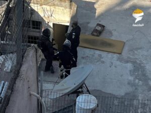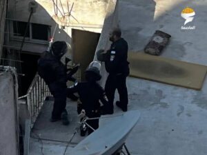 وتُظهر الصور لحظات اقتحام المنزل وتواجد القوات داخل الساحة، وسط حالة من الذعر والغضب بين أفراد العائلة وسكان الحي الذين تجمّعوا للتضامن مع السيدة شويكي.
