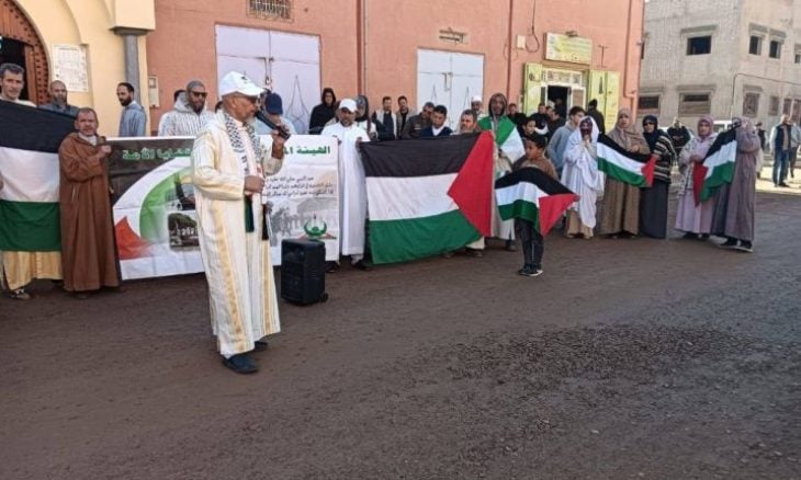 وشهدت مظاهرات مدن تنغير وطنجة ومكناس وشفشاون والقنيطرة رفع المشاركين لافتات كتب عليها شعارات داعمة لفلسطين مثل: “فلسطين حرة”، و”الشعب يريد تحرير فلسطين”، و”من المغرب لفلسطين.. شعب واحد وليس اثنين”، إلى جانب رفع الأعلام الفلسطينية والمغربية.