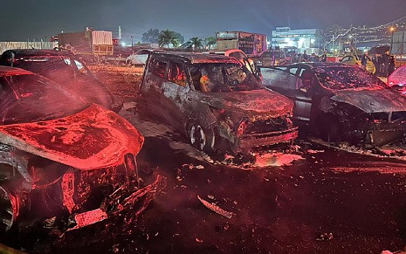 وأشار إلى أن فرق الإطفاء استخدمت المياه والرغوة للسيطرة على النيران ومنع انتشارها، وفحصت المركبات للتأكد من عدم وجود عالقين.