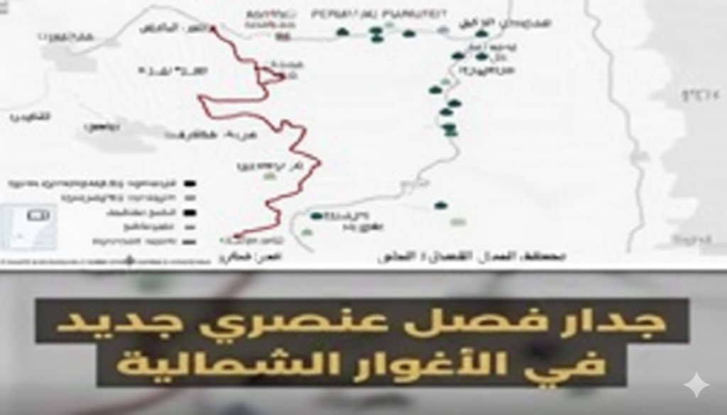 مقطع جديد من الجدار العنصري بطول 22 كم وعرض 50 مترًا، بهدف فصل التجمعات الفلسطينية عن أراضيها الزراعية، ضمن مشروع يعرف باسم “الخيط القرمزي”، وتأثيره يشمل أكثر من 45 ألف دونم من الأراضي الزراعية.